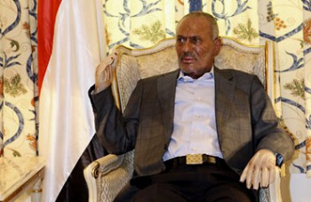 متظاهر يرمي حذاءه باتجاه علي عبد الله صالح في نيويورك