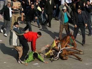 مؤيدون يركبون الجمال ومسلحون بالعصي يقتحمون ميدان التحرير واخبار البلد تنفرد بنشر الصور