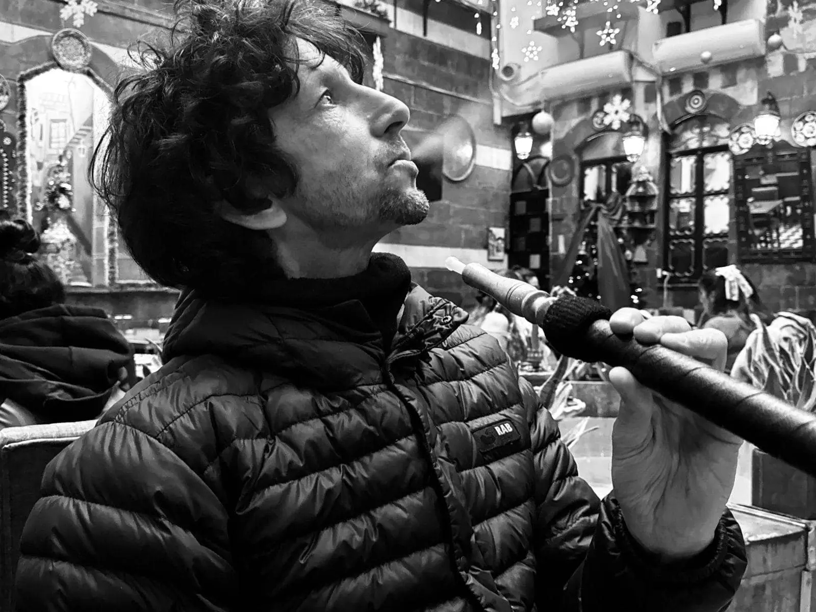 صحفي إسرائيلي يدخن الأرجيلة في أحد مقاهي دمشق