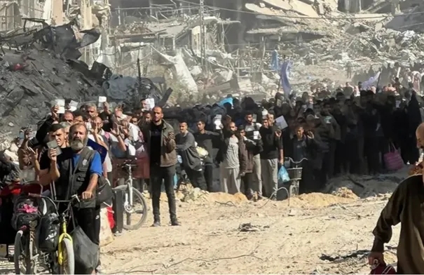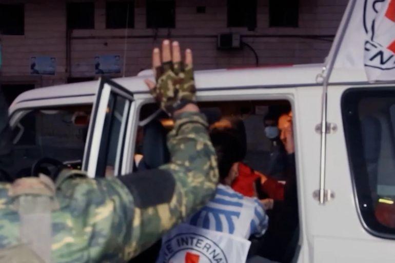 "كتائب القسام" تسلم الدفعة الأولى من الأسرى الإسرائيليين في ساحة السرايا وسط حضور جماهيري كبير