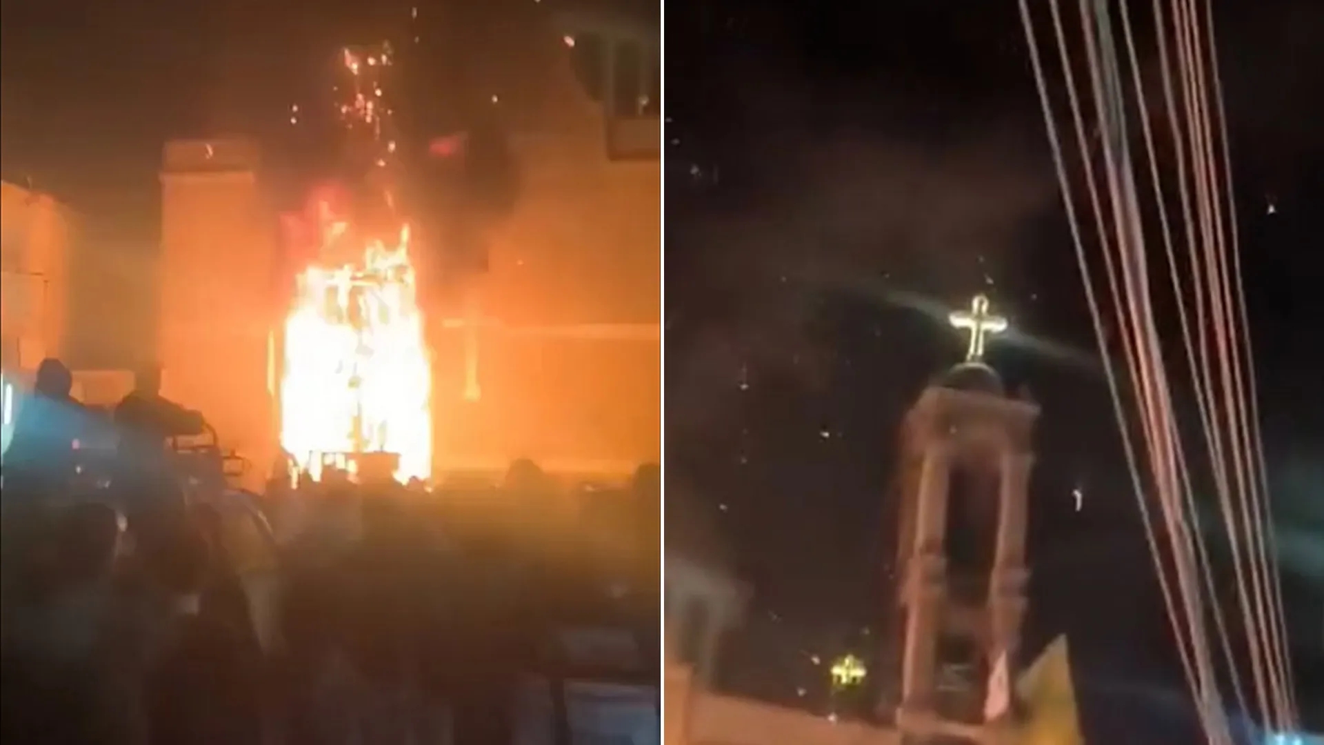 سوريا... إحراق شجرة الميلاد أمام كنيسة في صحنايا (فيديو)