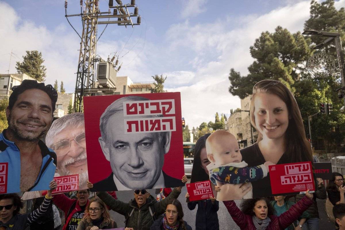 أقارب بعض الرهائن الذين تحتجزهم «حماس» في غزة يتظاهرون أمام منزل نتنياهو في القدس