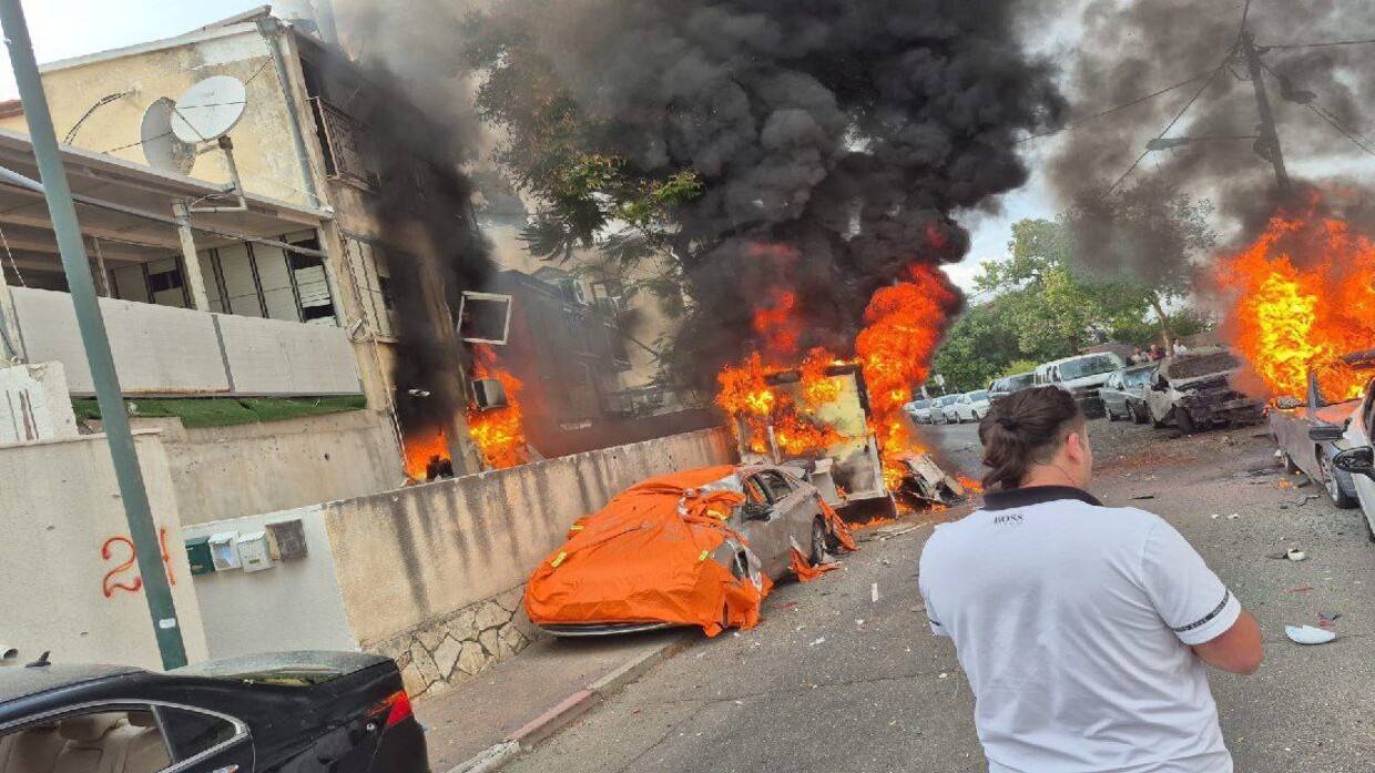إسرائيل تتعرض لهجوم كبير.. صواريخ تصيب مبان واحتراق سيارات في الكريوت وسط هلع واسع (صور)