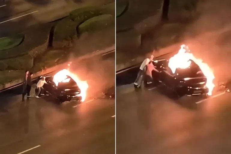 حبسته الأبواب الإلكترونية.. سائق يلقى حتفه احتراقا داخل سيارة كهربائية