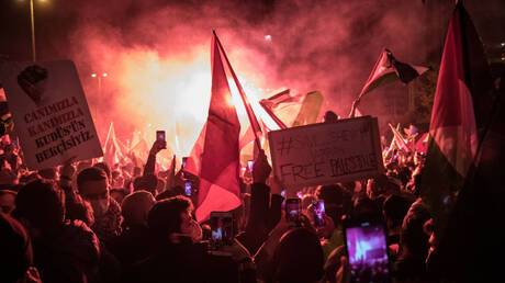 متظاهرون يشعلون النيران في محيط قنصلية إسرائيل باسطنبول احتجاجا على قصف النازحين في رفح