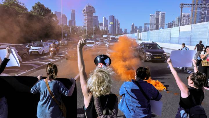 متظاهرون يغلقون الطريق أمام وزارة الدفاع الإسرائيلية