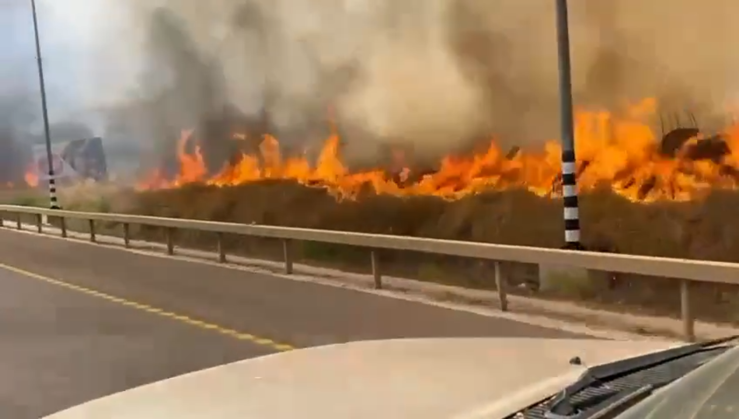 اندلاع النيران بين مستوطنتي كريات شمونة وبيت هيلل إثر سقوط صواريخ أطلقت من لبنان