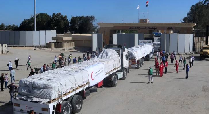 30 شاحنة تحمل 100 طن مساعدات تدخل معبر رفح لقطاع غزة