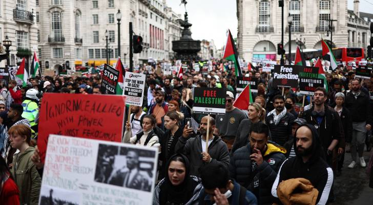 100 ألف متظاهر مؤيد للفلسطينيين في لندن