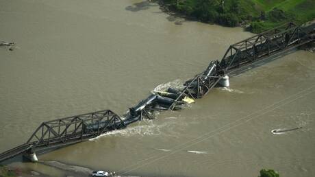 انهيار جسر يسفر عن سقوط قطار محمّل بمواد خطرة في نهر بالولايات المتحدة