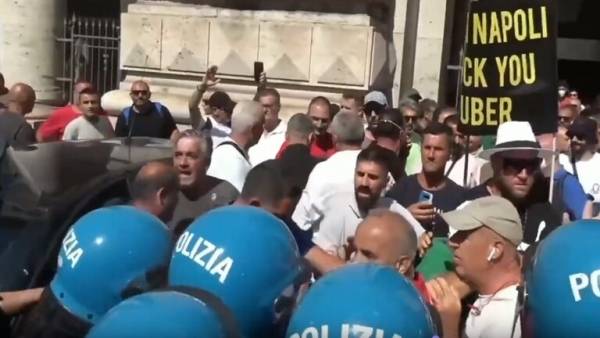سائقو سيارات الأجرة الإيطاليون يقتحمون باحة البرلمان في روما
