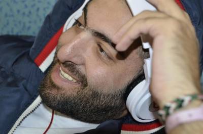 الفنان الفلسطيني محمد عساف في مدينة الحسين الطبية