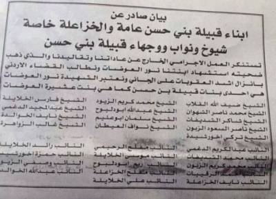 ''بني حسن'' تستنكر جريمة قتل طالبة ''آل البيت''
