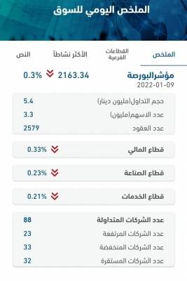 الملخص اليومي لحركة تداول الاسهم في بورصة عمان لجلسة الاحد