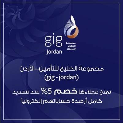 مجموعة الخليج للتأمين-الأردن تمنح عملاءها خصم 5% عند تسديد كامل أرصدة حساباتهم إلكترونياً