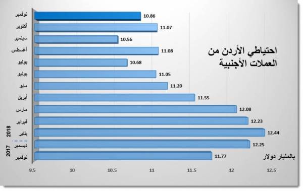احتياطي الأردن من العملات الأجنبية يتراجع بنهاية نوفمبر