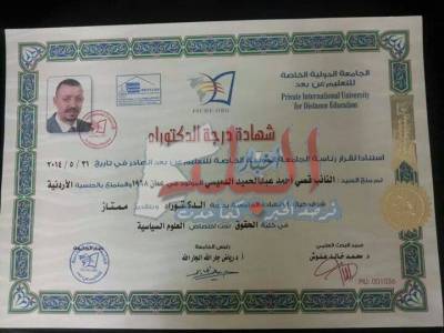 بالصور .. كيف حصل النائب الدميسي على شهادة الدكتوارة ومن المسؤول ؟؟