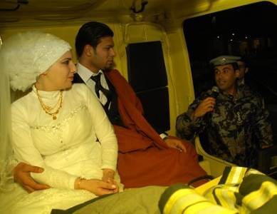 الدفاع المدني يزف عروسين علقا بالثلوج بالآليات المجنزرة - شاهدوا الصور