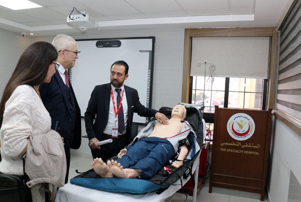 رئيس جامعة بيرزيت، ترافقه الدكتورة أبو حمدة في زيارة رسمية إلى المستشفى التخصصي
