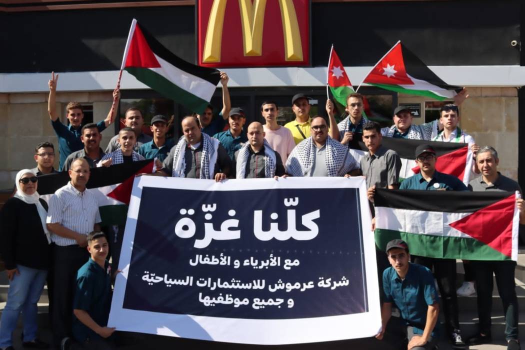 موظفون وأعضاء إدارة شركة عرموش "ماكدونالدز الأردن" يشاركون في وقفة صامتة تضامناً مع أهل غزة
