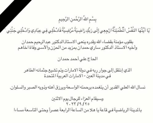 شقيق أ.د. ساري حمدان (رئيس جامعة عمان الاهلية)... في ذمة الله