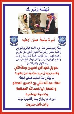 عمان الأهلية تشارك الأردنيين فرحتهم بزفاف سمو ولي العهد المعظم ...صور