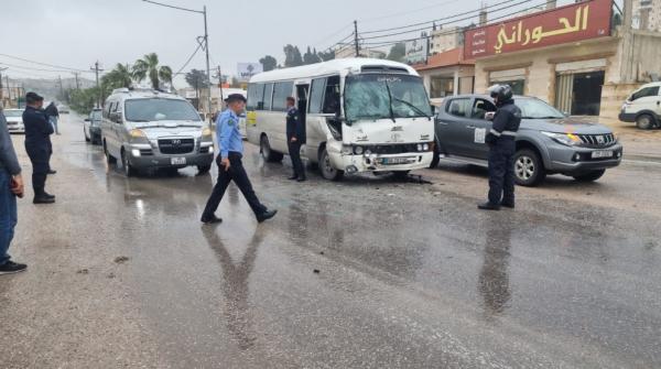 21 إصابة بتصادم حافلة وشاحنة في إربد