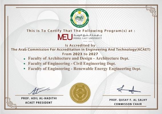 برامج هندسية في "الشرق الأوسط" تنال اعتماد الهيئة العربية للاعتماد الهندسي والتكنولوجي