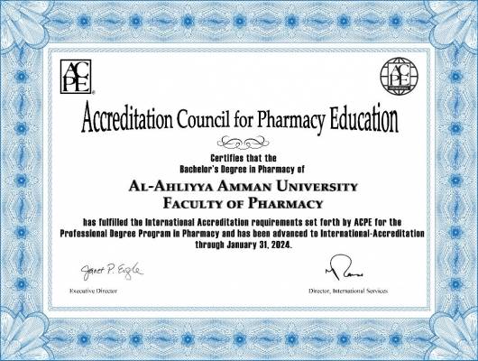 صيدلةعمان الاهليةتحصل على اعتماد ACPE الأمريكي
