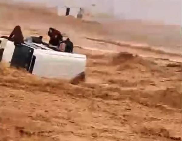 السيول تحاصر مواطنين داخل مركبة في خان الزبيب