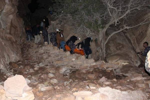 إنقاذ سائح أجنبي سقط عن مقطع صخري بمعان