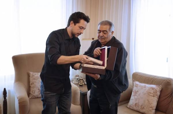 الفنان موسى حجازين يهدي ولي العهد الامير الحسين نسخة من المصحف الشريف