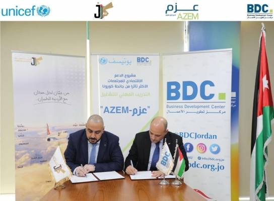 بدعم من اليونيسف تطوير الاعمال والاردنية للطيران تتفقان للتدريب على مهنة مضيف طيران جوي