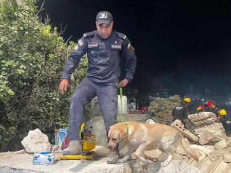 كلاب بوليسية للكشف عن مصابين انهيار عمارة اللويبدة