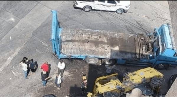 انقلاب آلية ثقيلة على إحدى المركبات بطبربور - صورة