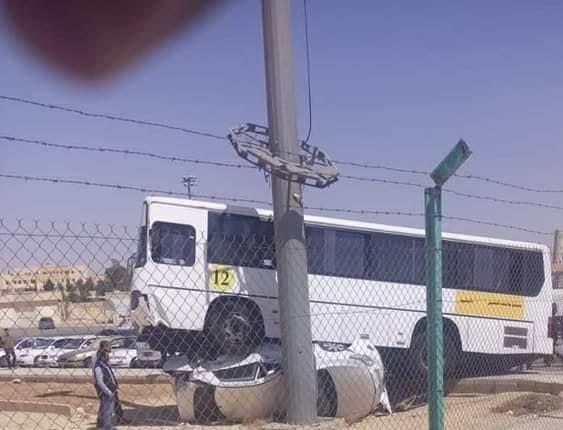 تصادم مركبتين أمام بوابة جامعة الحسين بن طلال بمعان