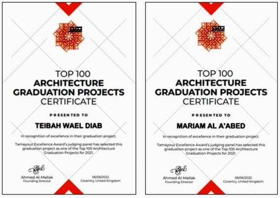 مشروعا تخرّج لطلبة هندسة العمارة "عمان الاهلية" ضمن قائمة أفضل 100 مشروع على مستوى العالم