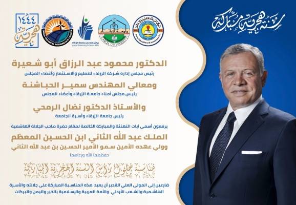 جامعة الزرقاء تهنىء بمناسبة حلول رأس السنة الهجرية المباركة