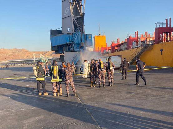 عمليات تعقيم وتطهير لمكان حادثة تسرب الغاز في العقبة