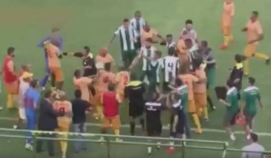 بالفيديو: من مباراة كرة قدم.. إلى مصارعة!