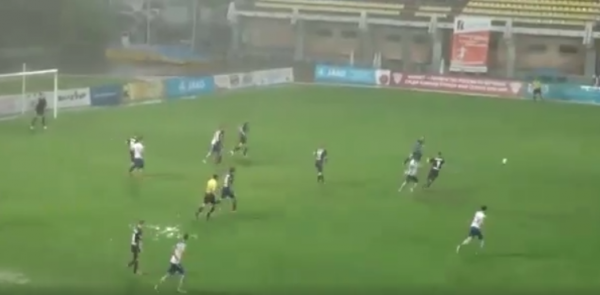 لاعب روسي يتحدى الأمطار ويسجل هدفا صاروخيا من 30 ياردة!