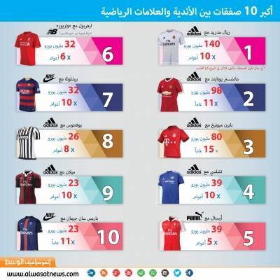 اكبر 10 صفقات بين الأندية العالمية والعلامات الرياضية