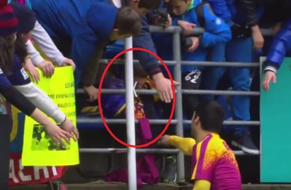 طفل يذرف دموعه بسبب تصرف إنساني رائع من سواريز (فيديو)