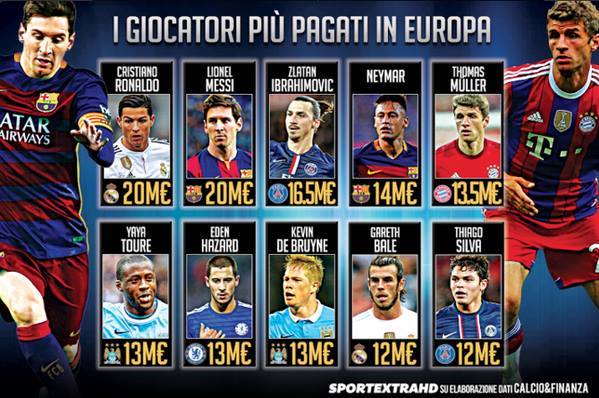 ميسي ورنالدو والعشرة الأعلى أجوراً في العالم؟