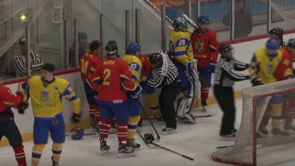 بالفيديو .. مشاجرة طاحنة بين لاعبي أوكرانيا ورومانيا لهوكي الجليد