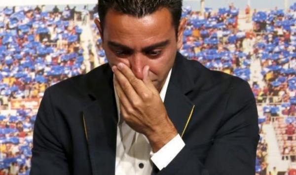 بالفيديو.. تشافي ينفجر باكيا لوداع برشلونة