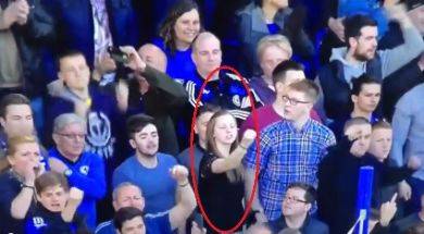 فيديو.. مشجعة تشيلسي تهين لاعبي مانشستر بحركة غير أخلاقية !