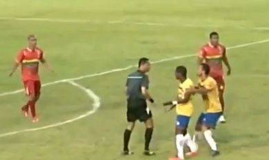 بالفيديو- الأمطار تتسبب في هدف طريف جدا والحكم يطرد 4 لاعبين