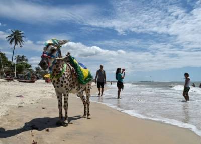 بالصور.. حمار يشجع «السامبا» على شواطئ البرازيل