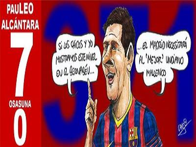 ميسي يحذر ريال مدريد وحكم الكلاسيكو في صورة كاريكاتيرية